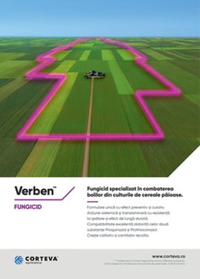 Verben™ este cel mai nou și mai puternic fungicid special creat și lansat de Corteva Agriscience în 2022 pentru a asigura protecția cerealelor încă de la primul tratament din primăvară. Prin utilizarea lui Verben™ în primul tratament T1, beneficiem de puterea curativa și preventivă a celor două substanțe active conținute. Având o plantă curată chiar din T1, putem optimiza schema tehnologică, fară a face rabat de la producție, deorece planta va fi curată înca din primavară și va fi mai rezistentă în fața următoarelor valuri de infecție.