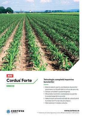 Începând cu această toamnă, compania Corteva Agriscience lansează noul erbicid destinat combaterii buruienilor din cultura porumbului, CORDUS® FORTE. Acest nou erbicid oferă fermierilor din Republica Moldova tehnologia completă în combaterea buruienilor atât monocotiledonate anuale și perene, cât și a celor dicotiledonate anuale si perene din cultura porumbului în post-emergență.